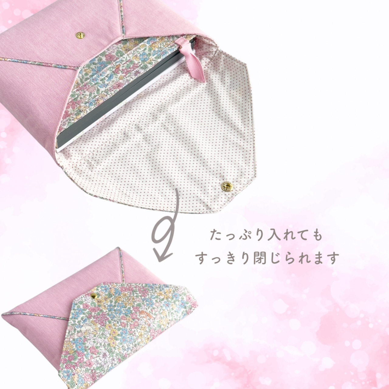 使いやすさにもこだわり、リバティ生地の上品な華やかさが引き立つデザインです。