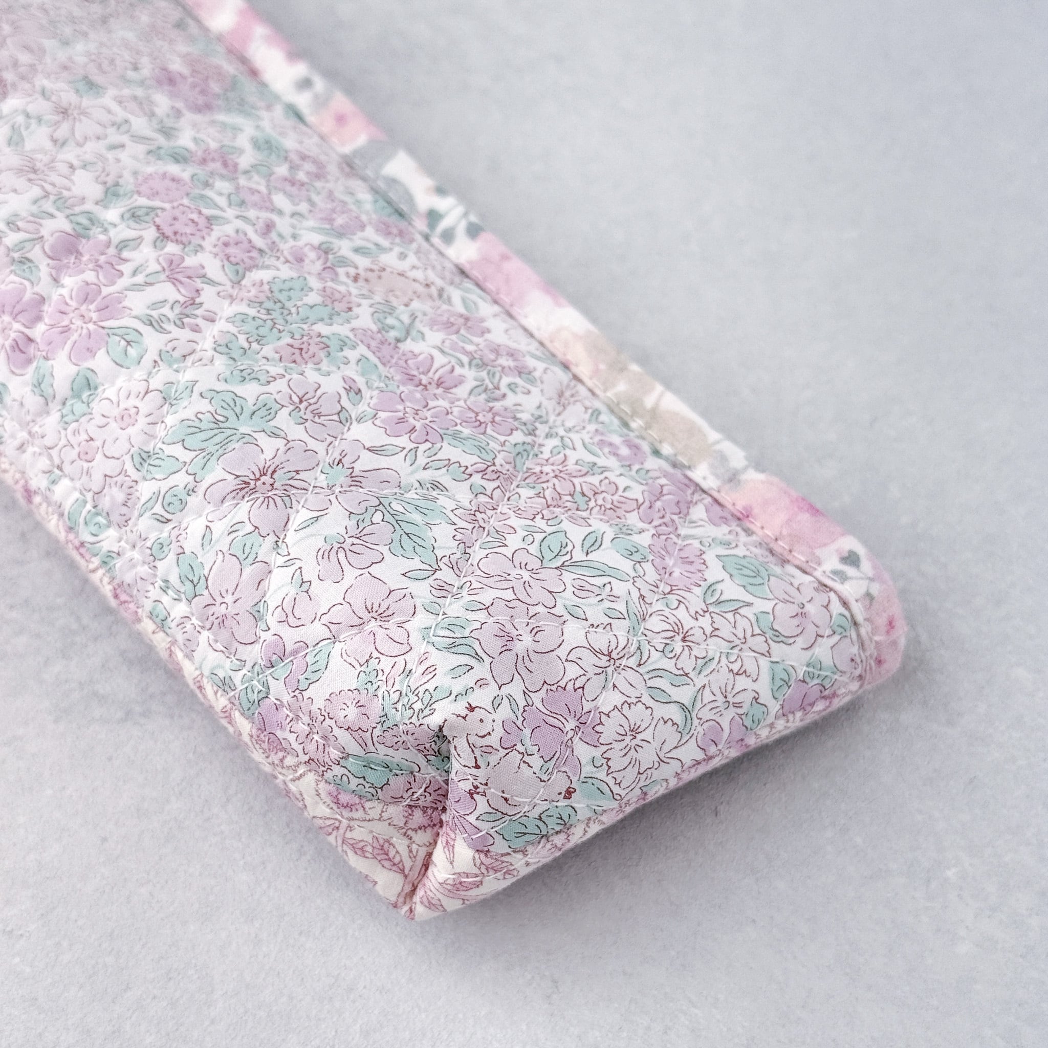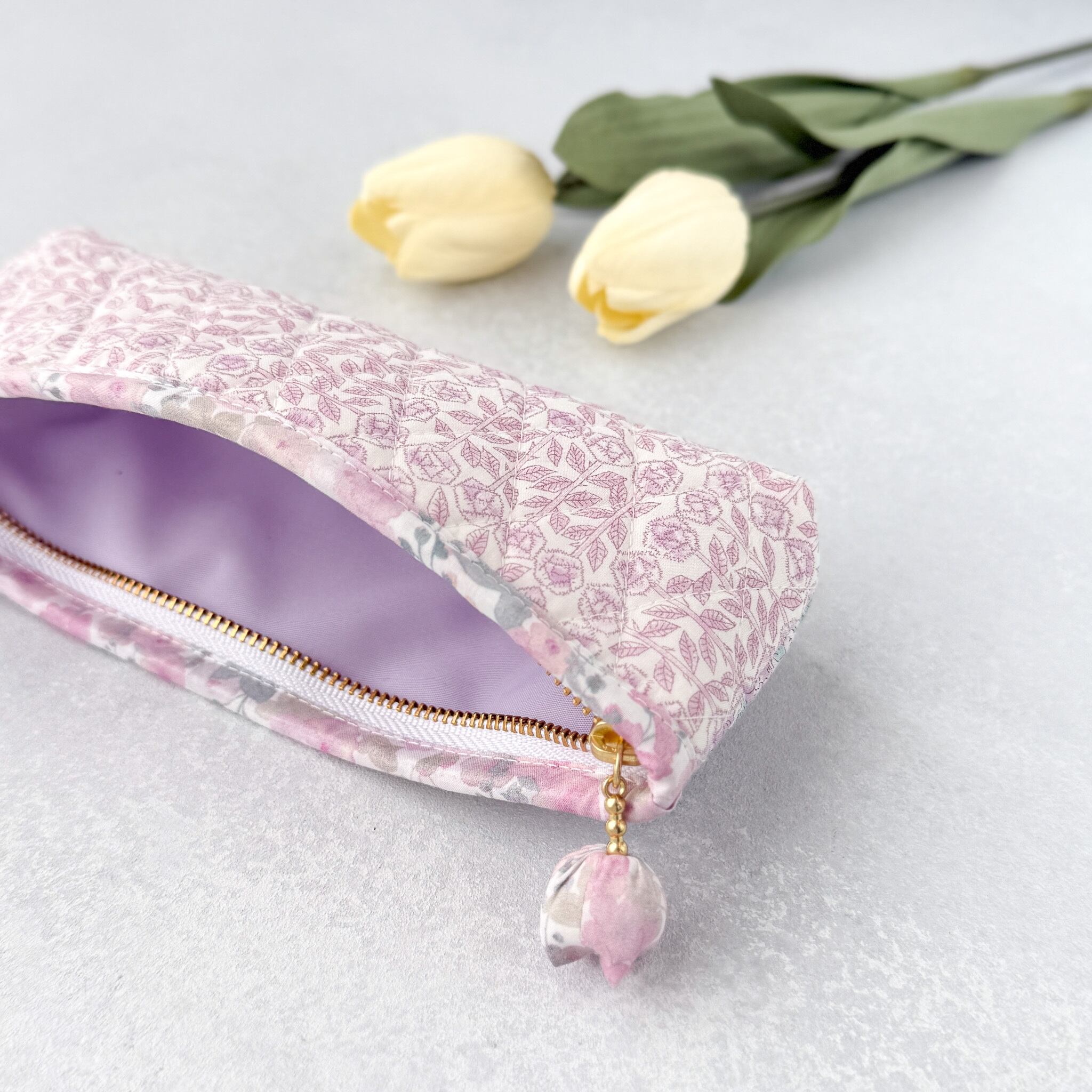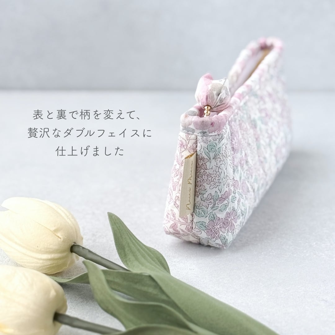 3種のリバティを楽しむ|ダブルフェイスのダイヤキルトペンポーチ(サナルイーズ・ラベンダー)