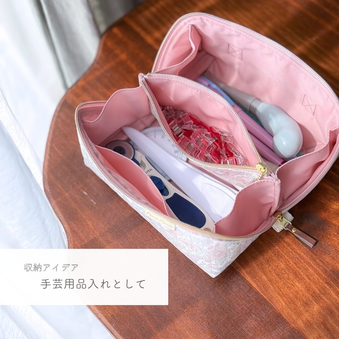 メイクポーチや文房具入れ、手芸用品入れ、ガジェットケースなど、用途に合わせてスッキリと収納できます。