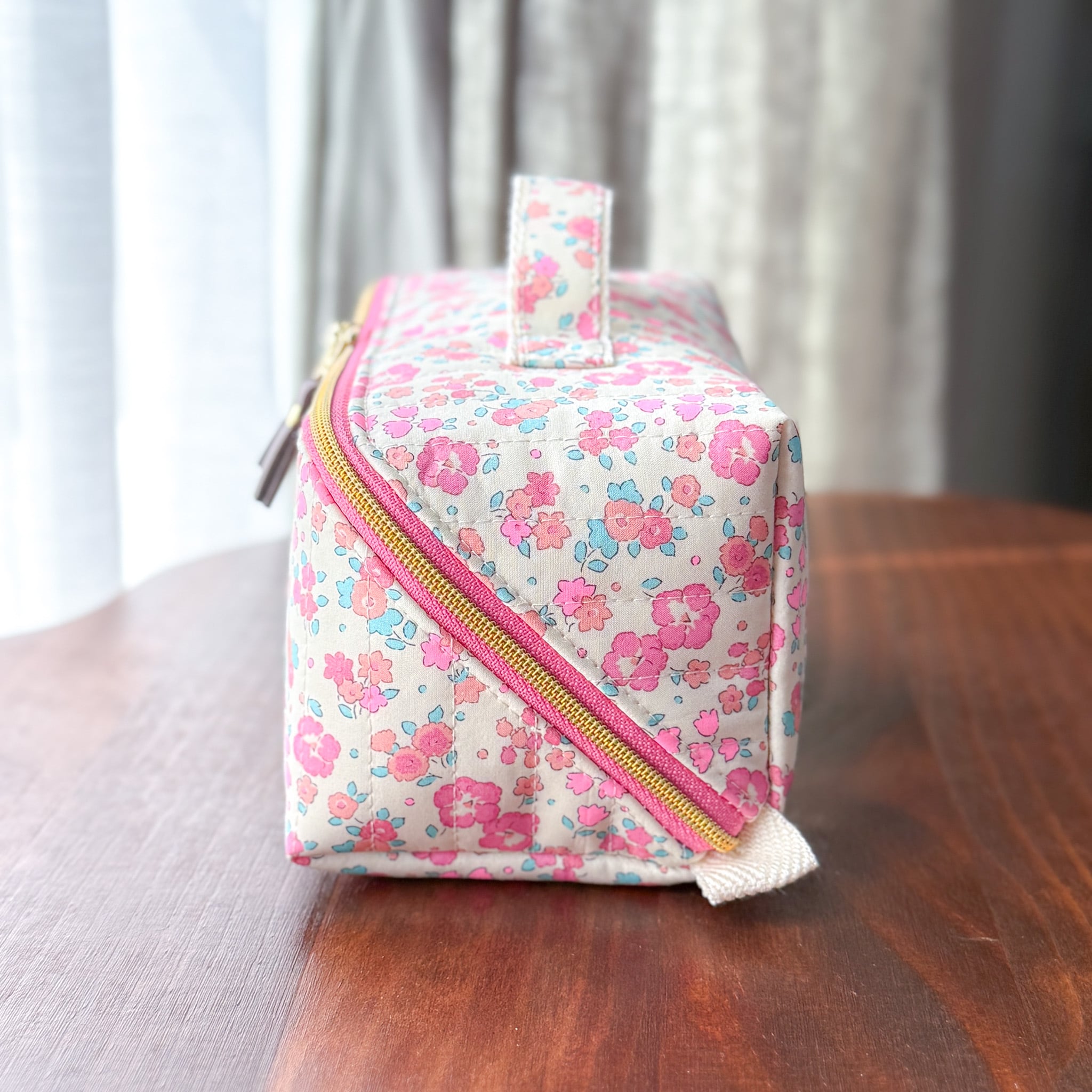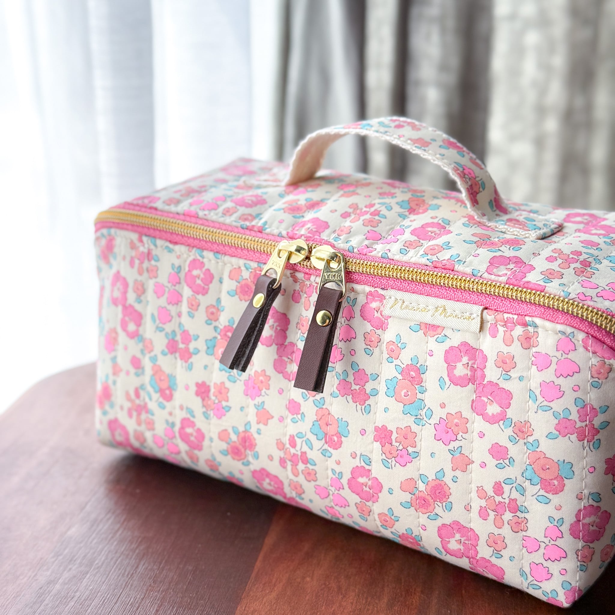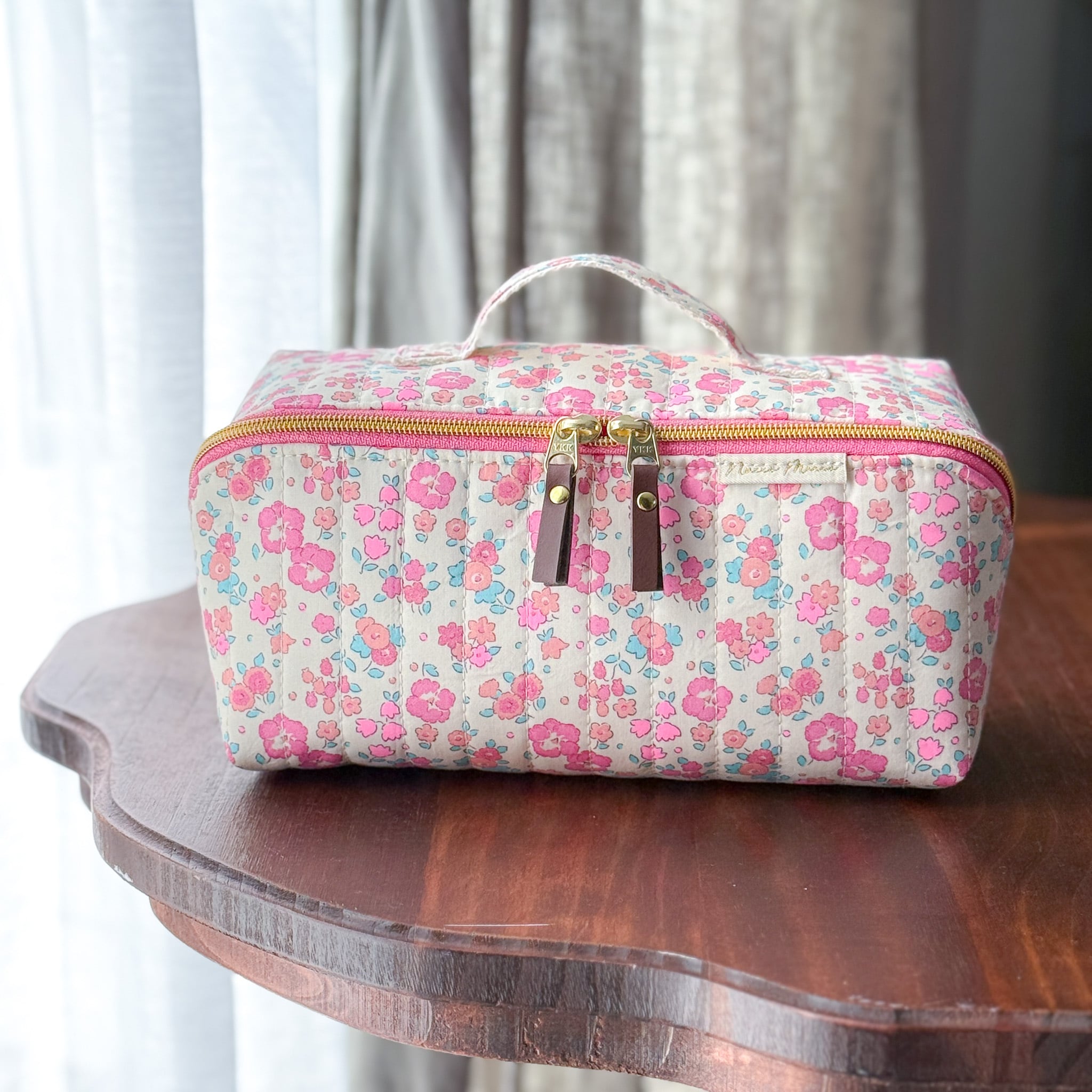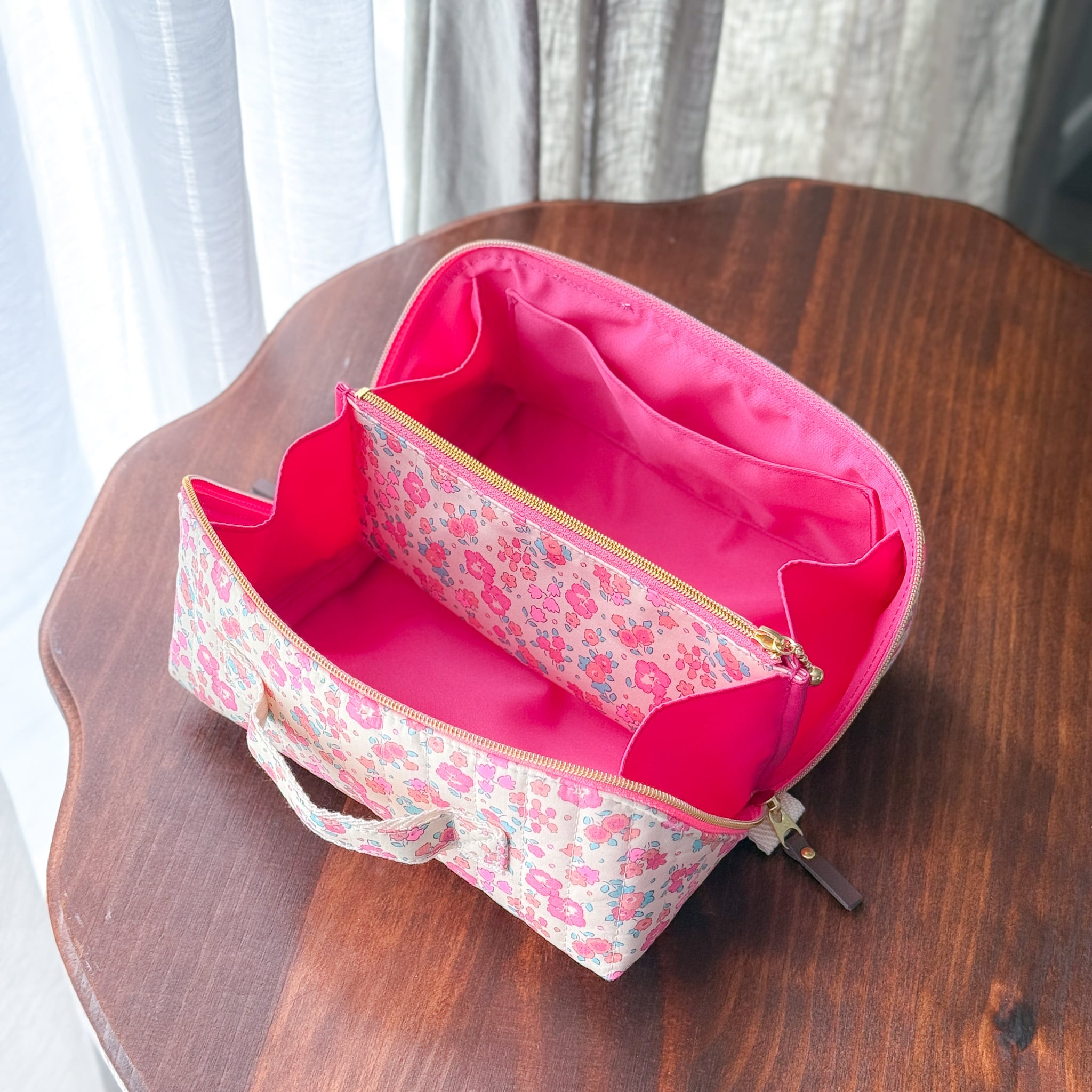 リバティプリントを使用した、スクエア型の大容量マルチポーチです。