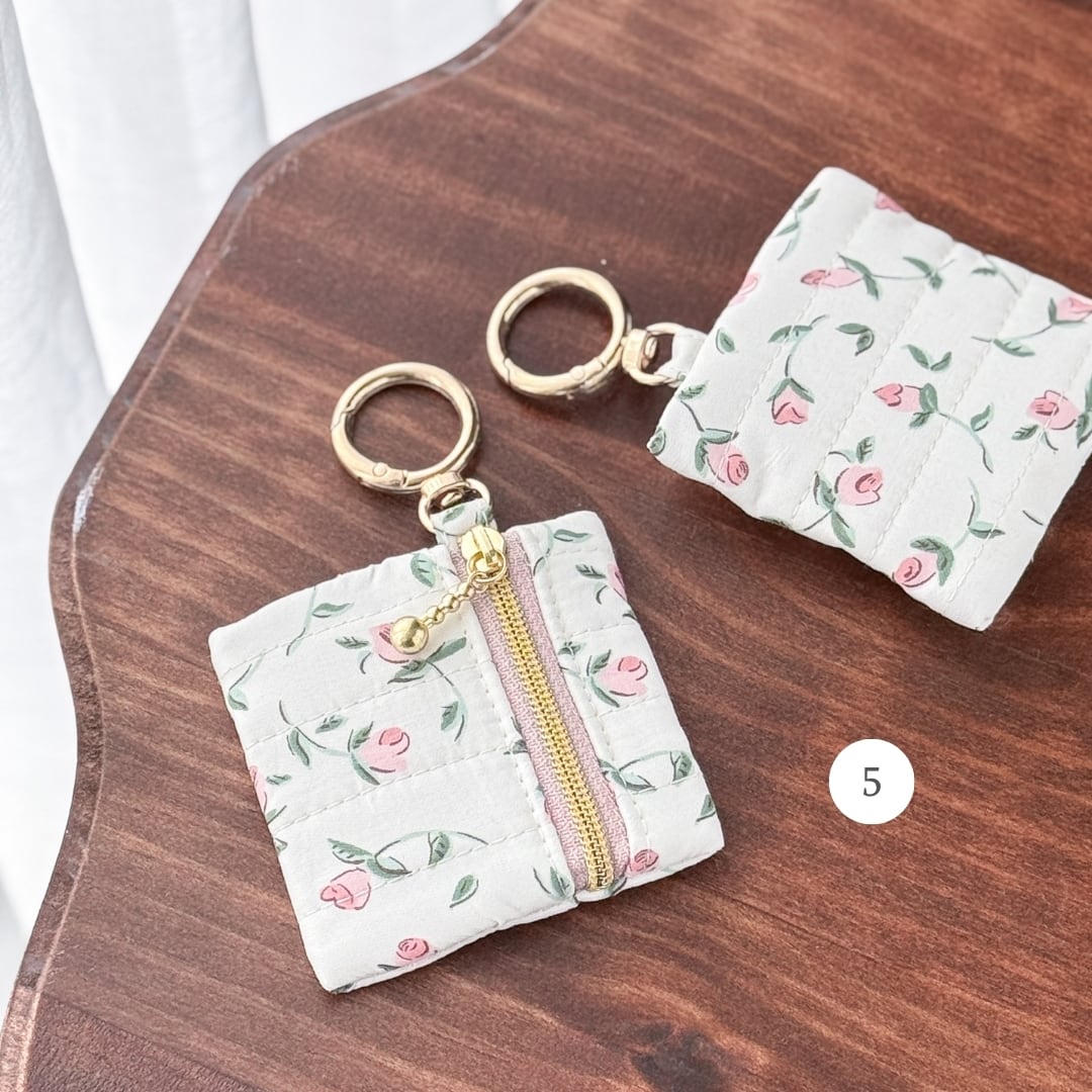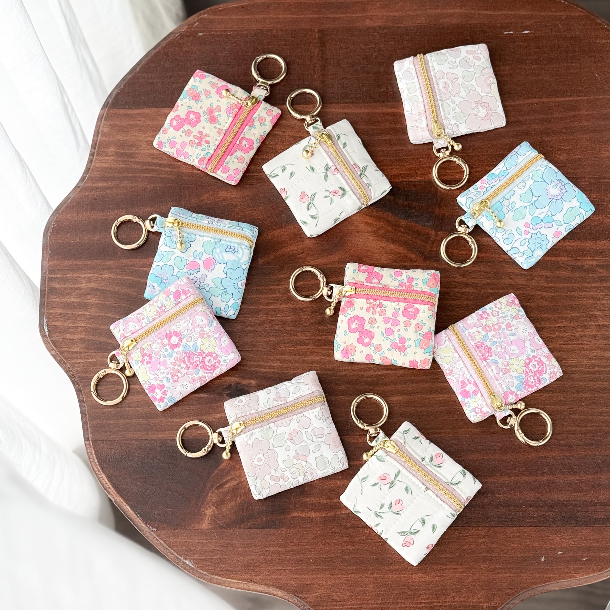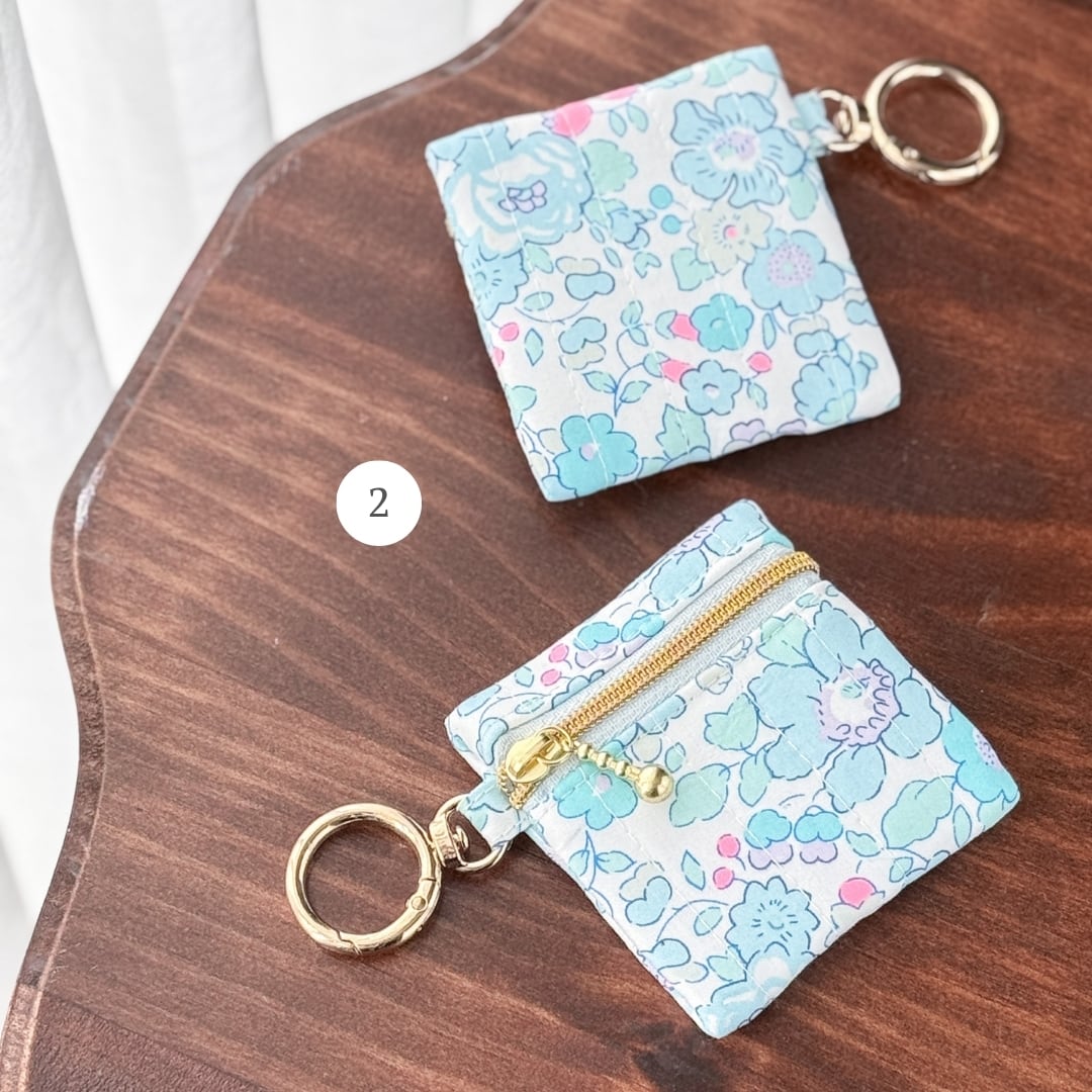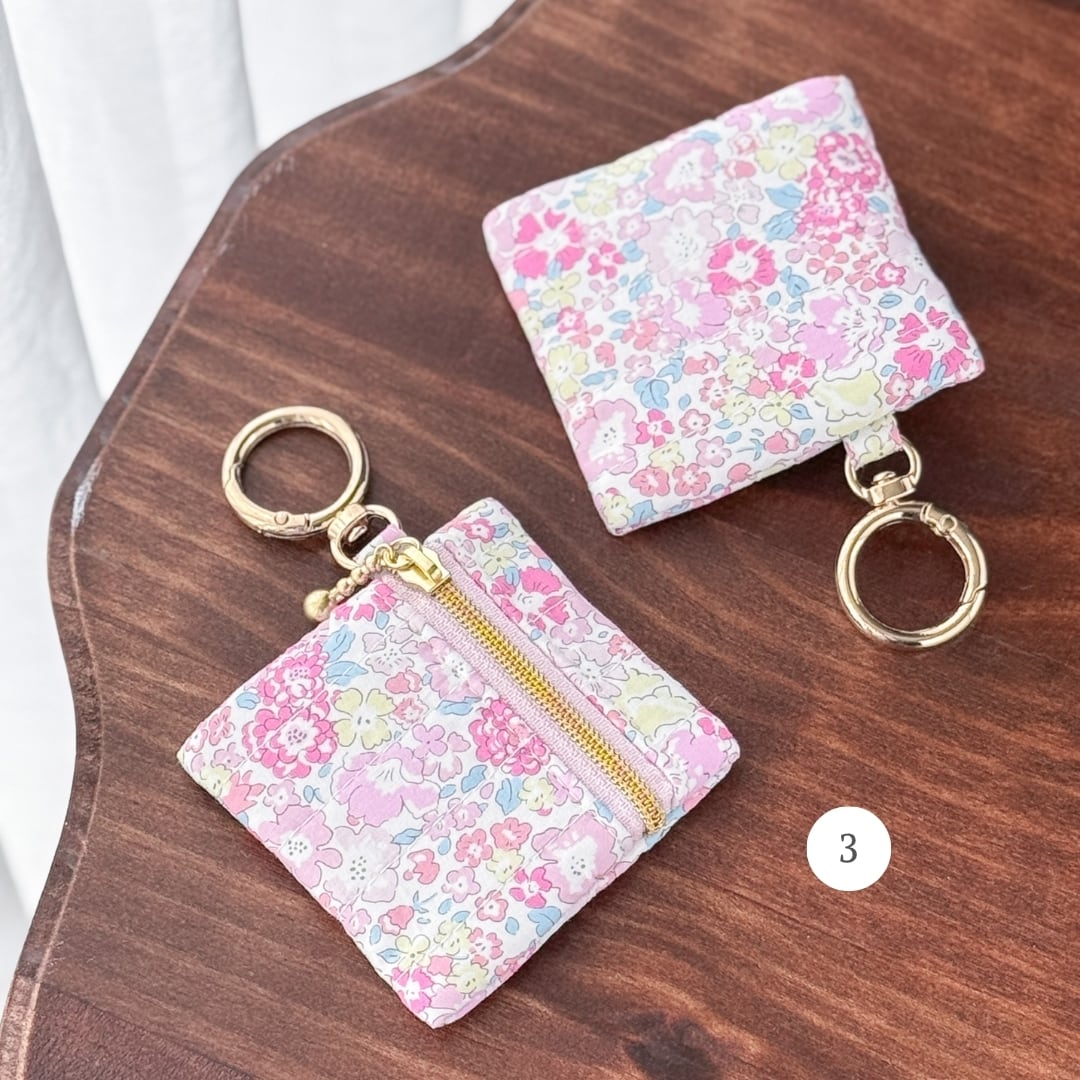 リバティプリントのミニミニスクエアポーチ(カラビナ付)