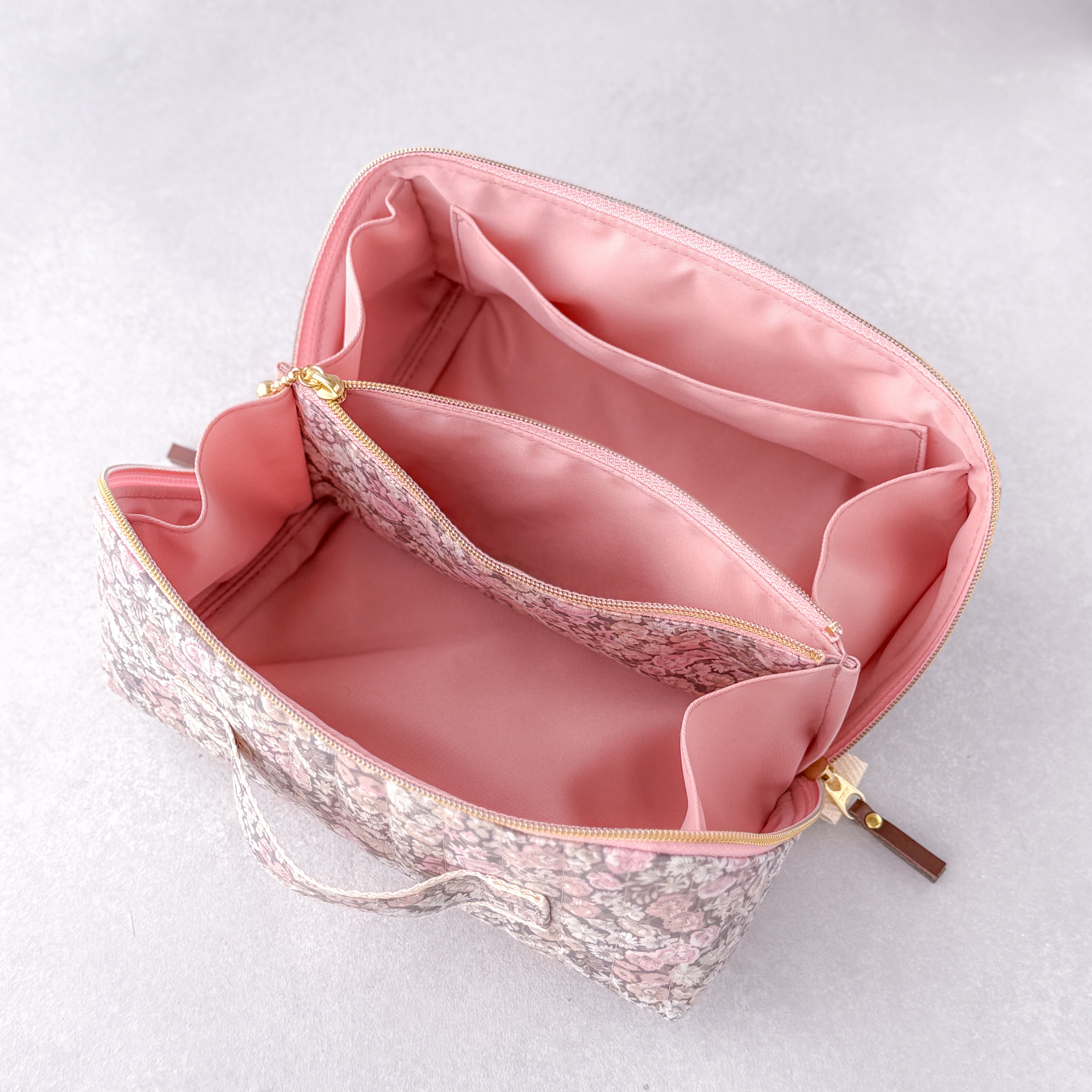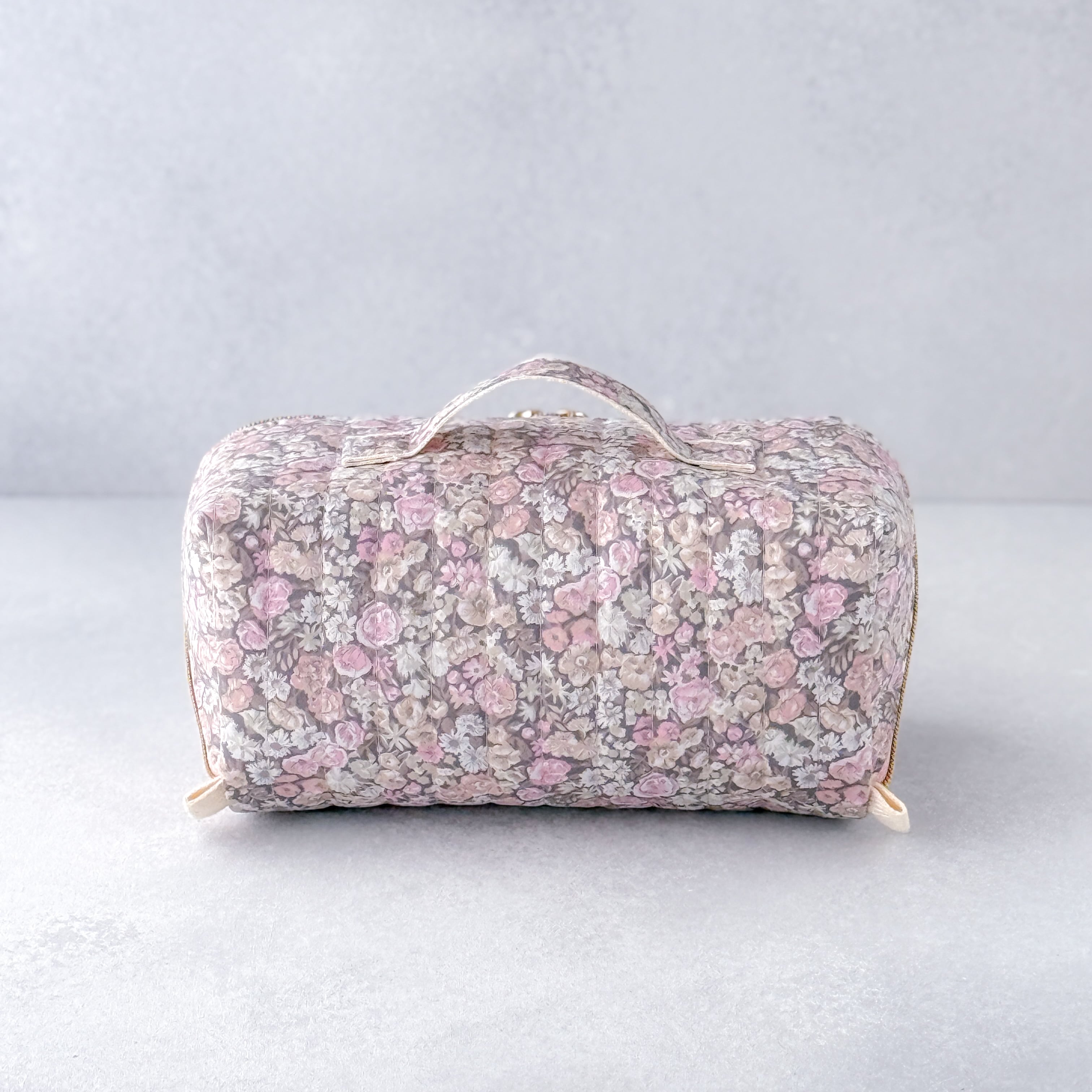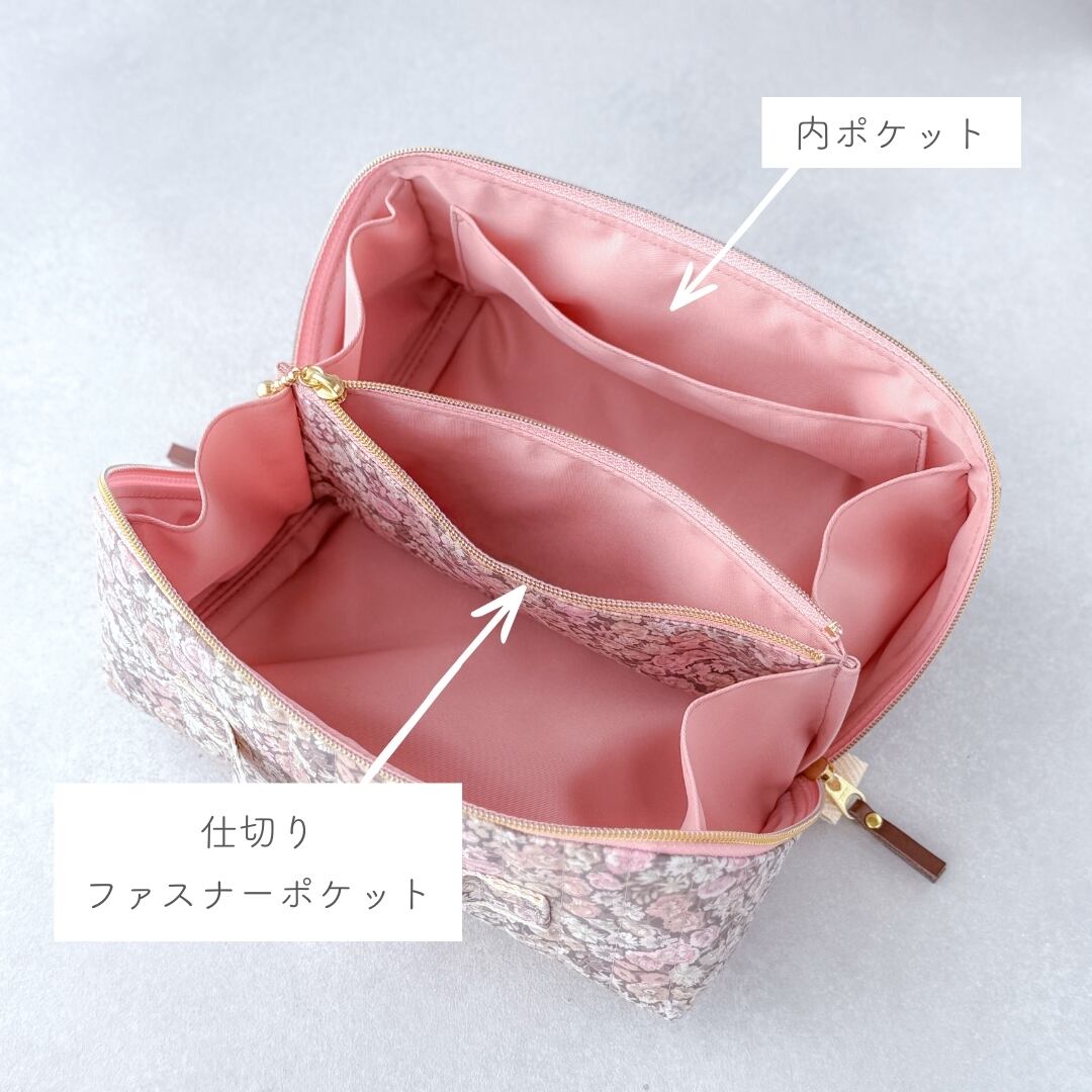 リバティプリントを使用した、スクエア型の大容量マルチポーチです。