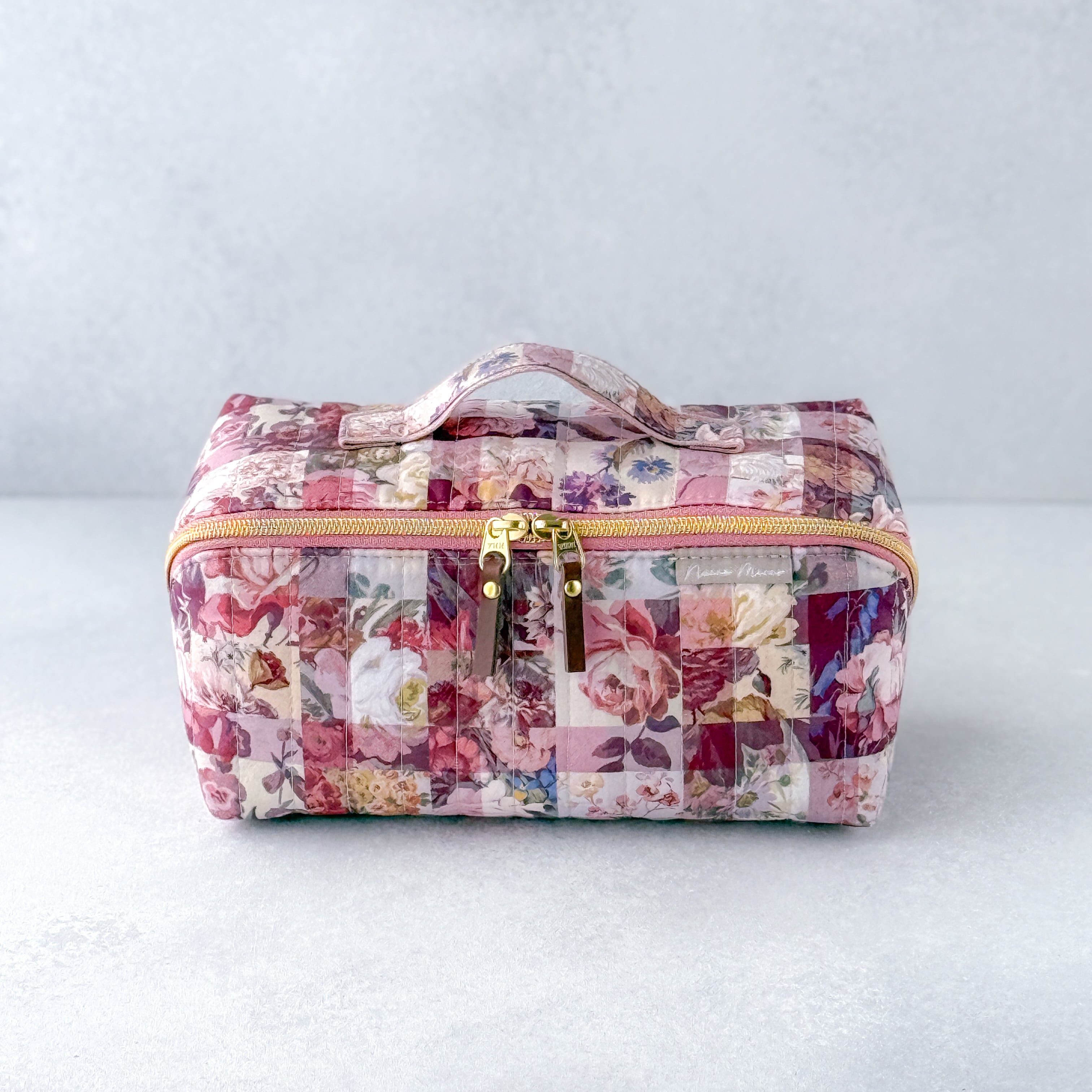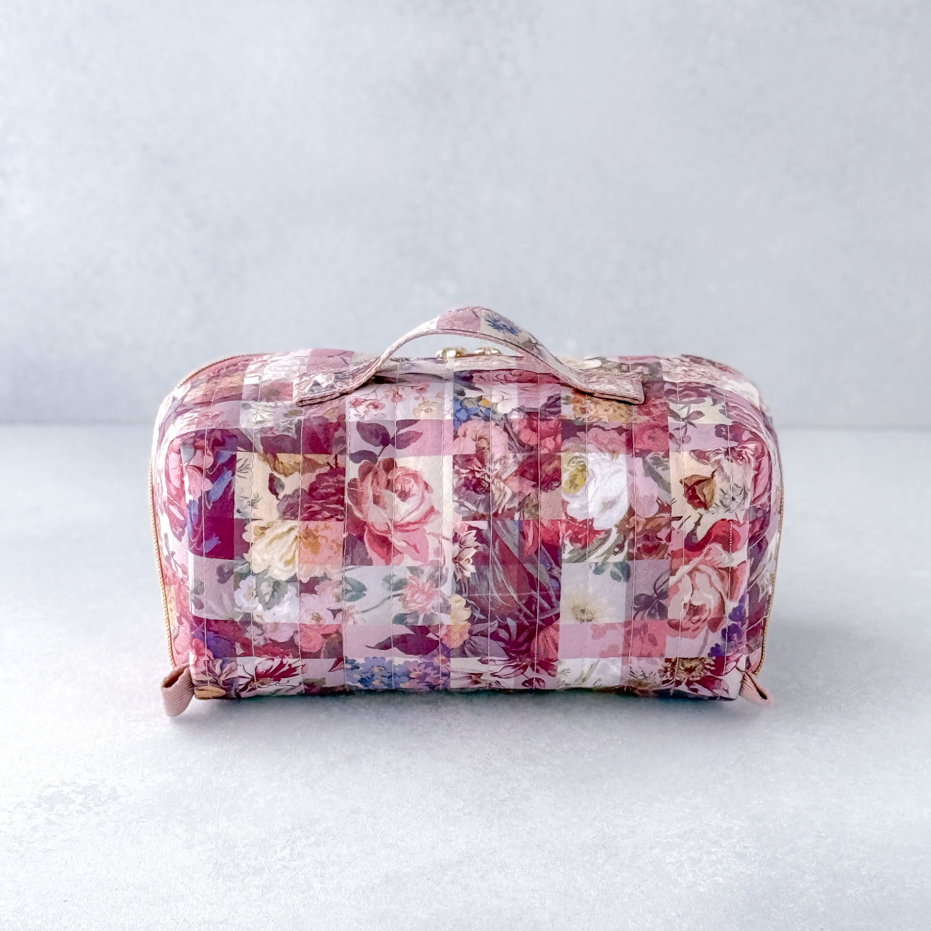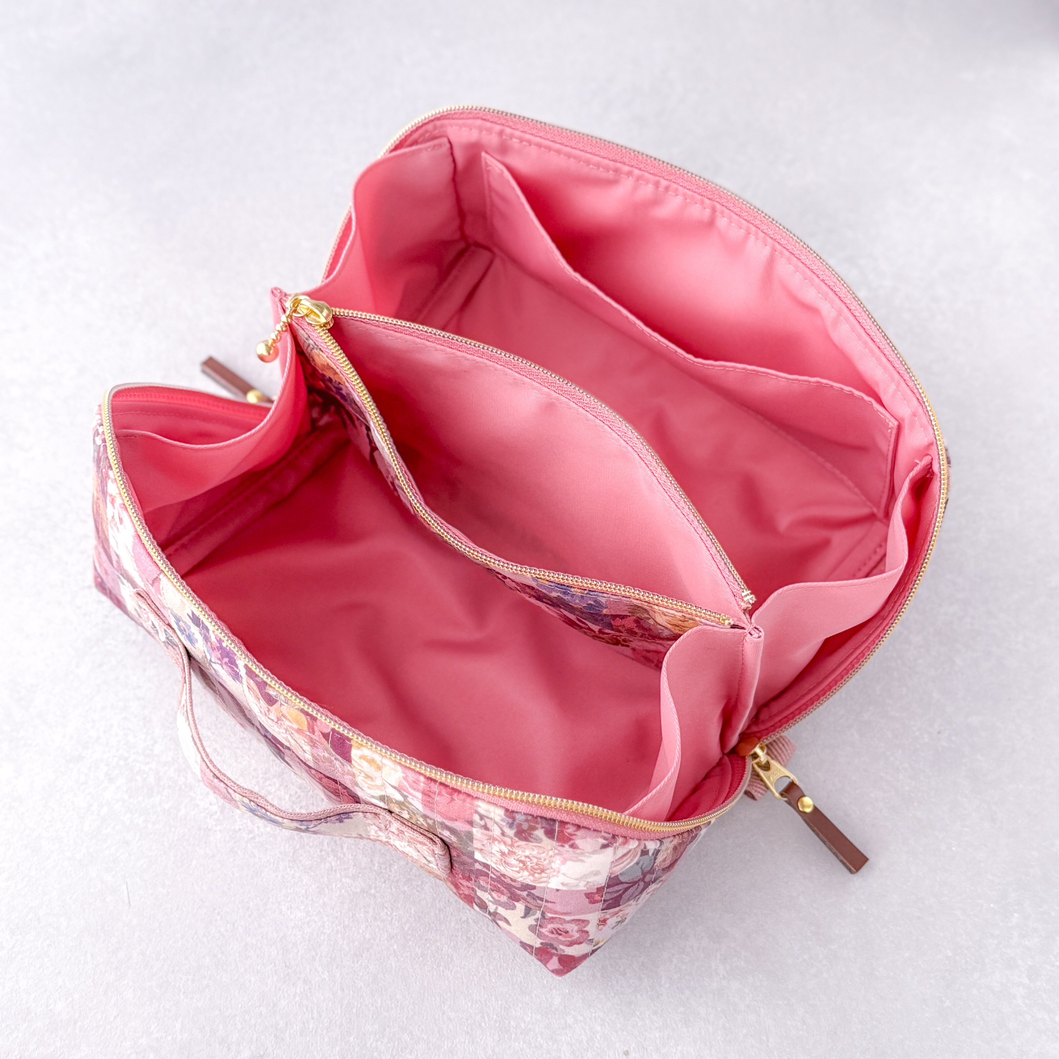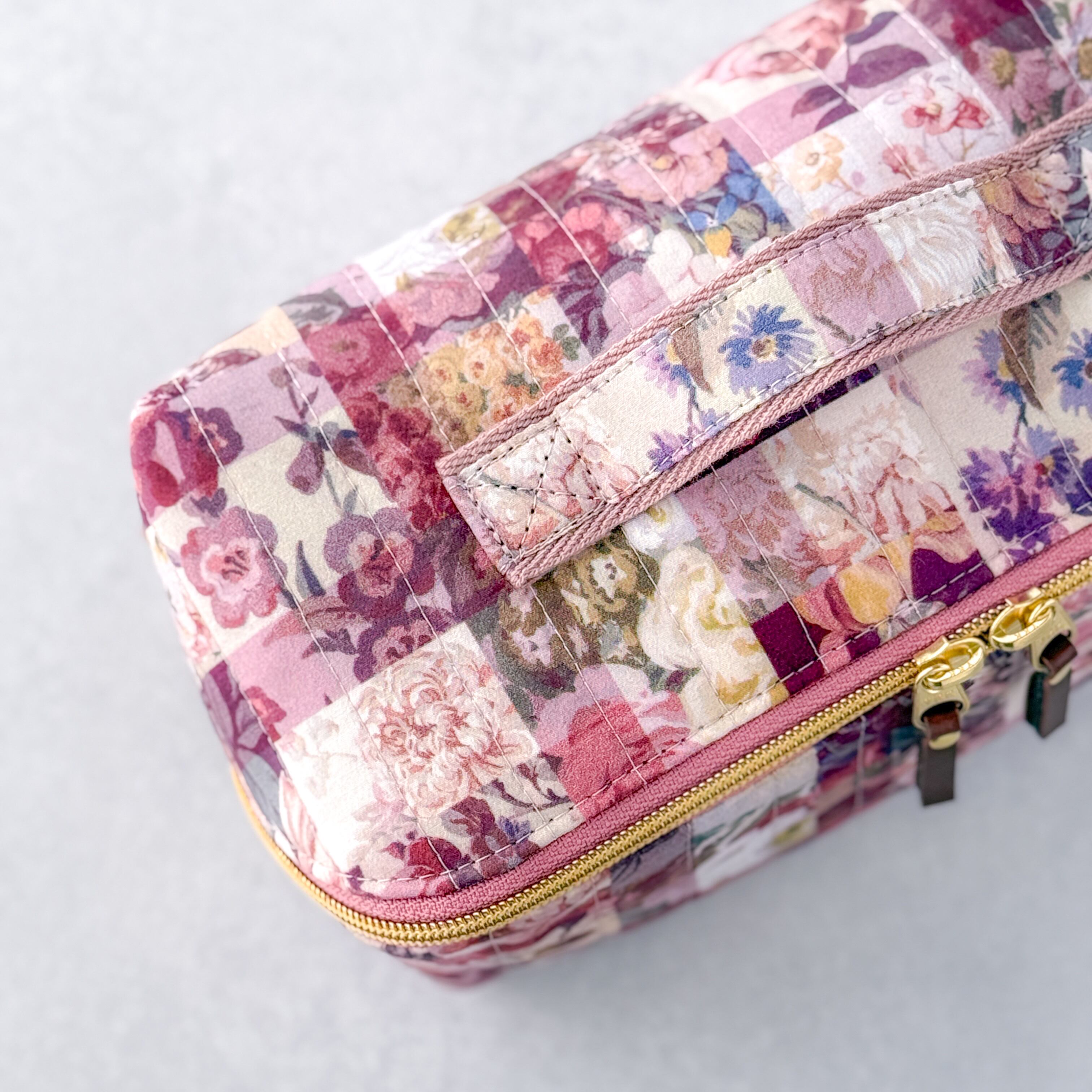 リバティプリントを使用した、スクエア型の大容量マルチポーチです。