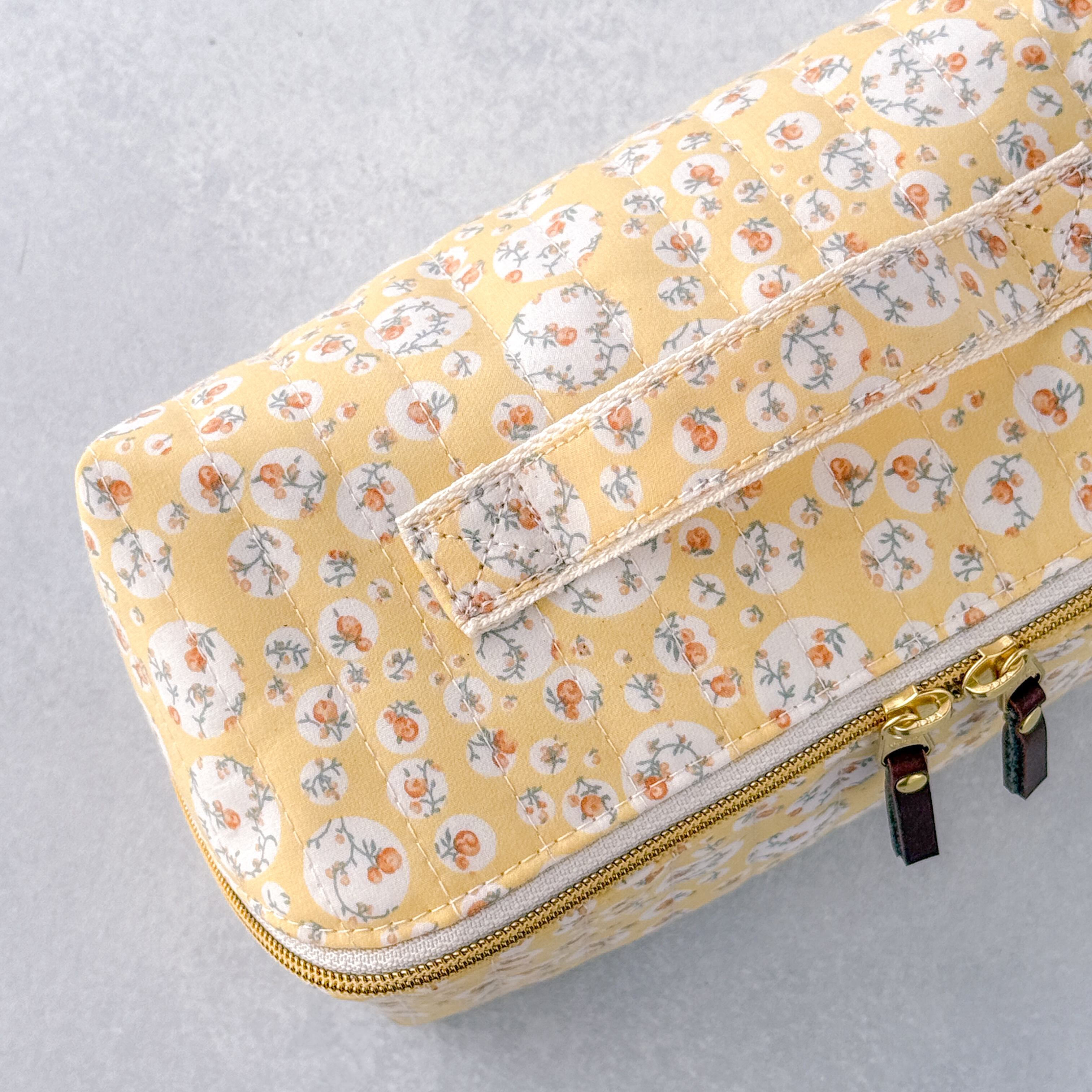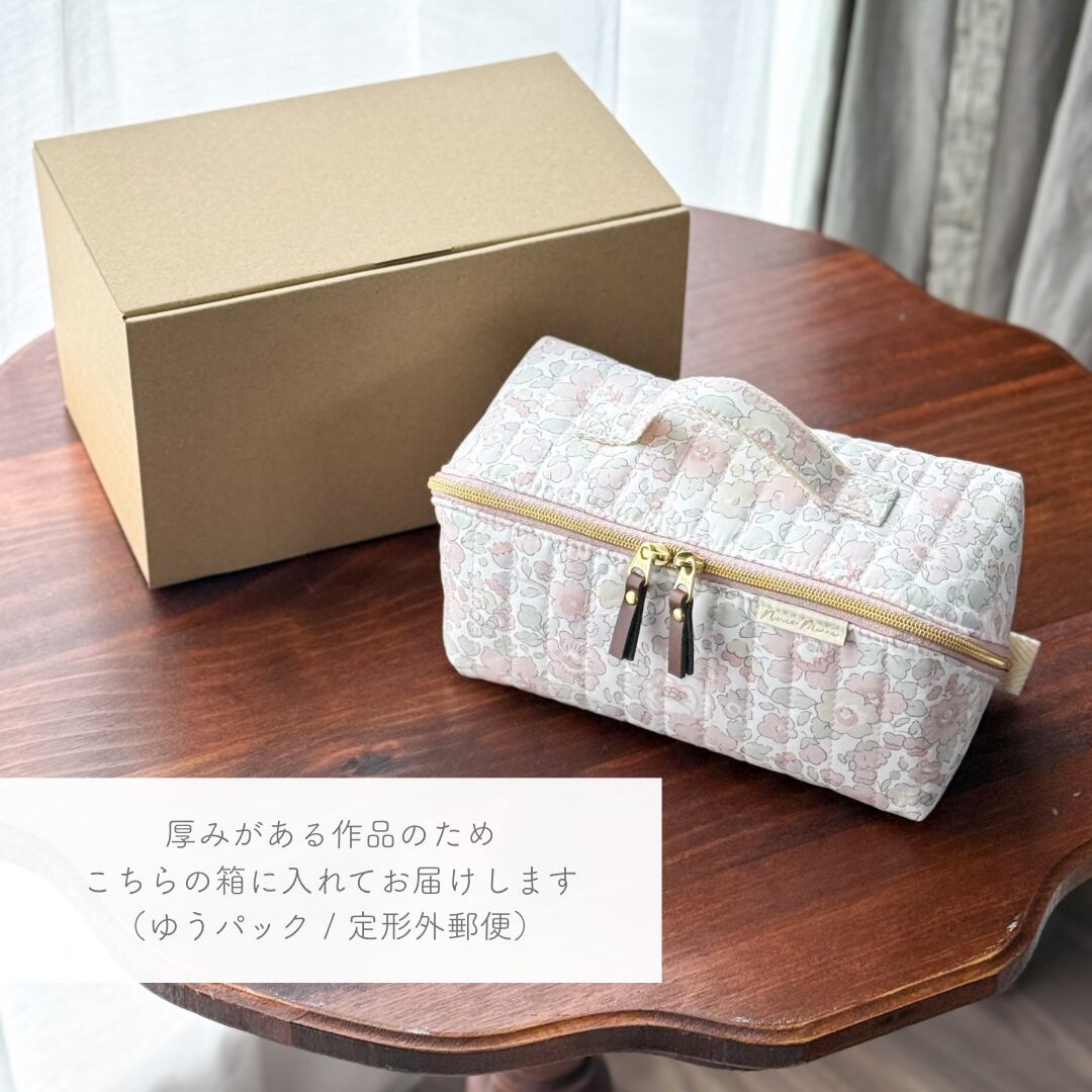 リバティプリントを使用した、スクエア型の大容量マルチポーチです。