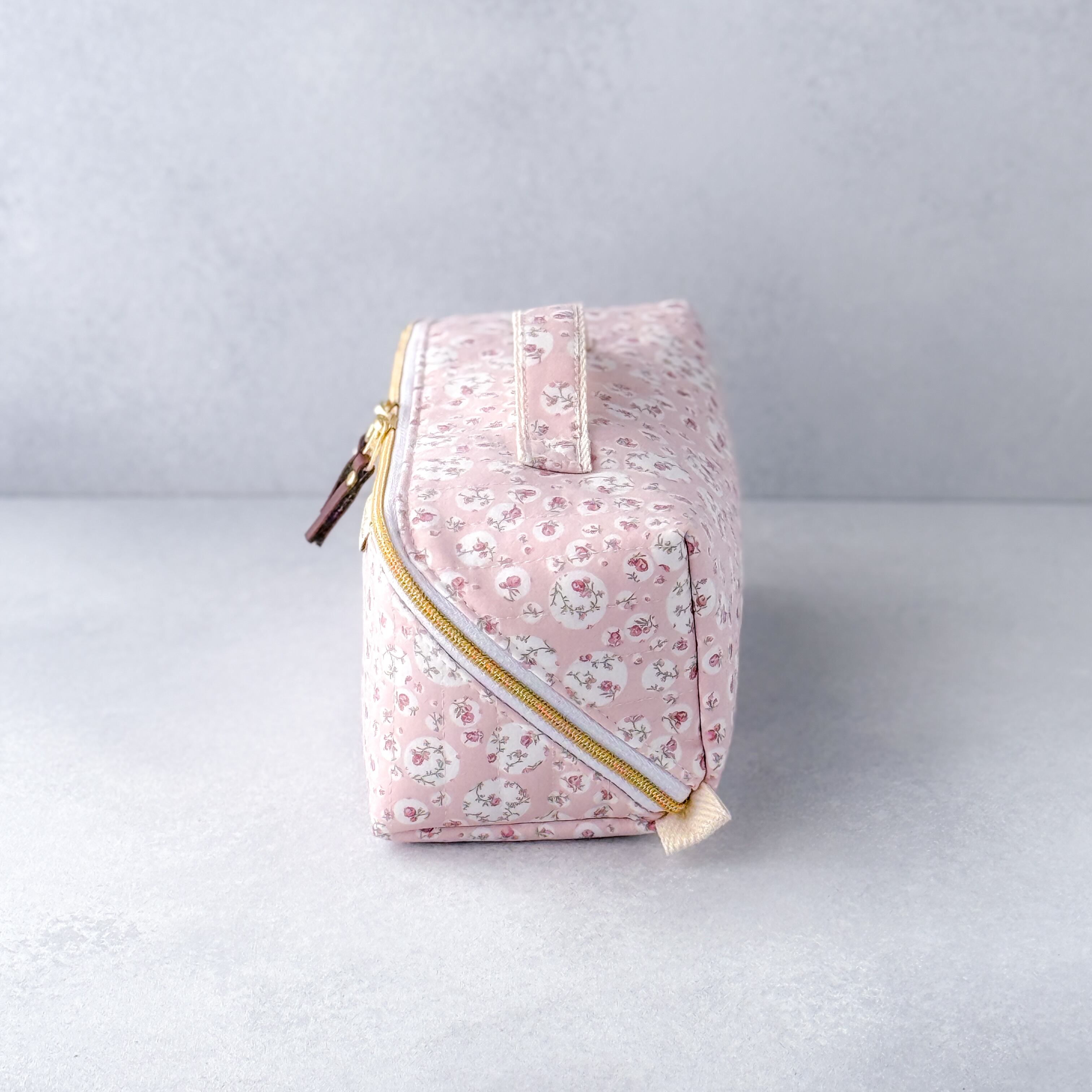 リバティプリントを使用した、スクエア型の大容量マルチポーチです。