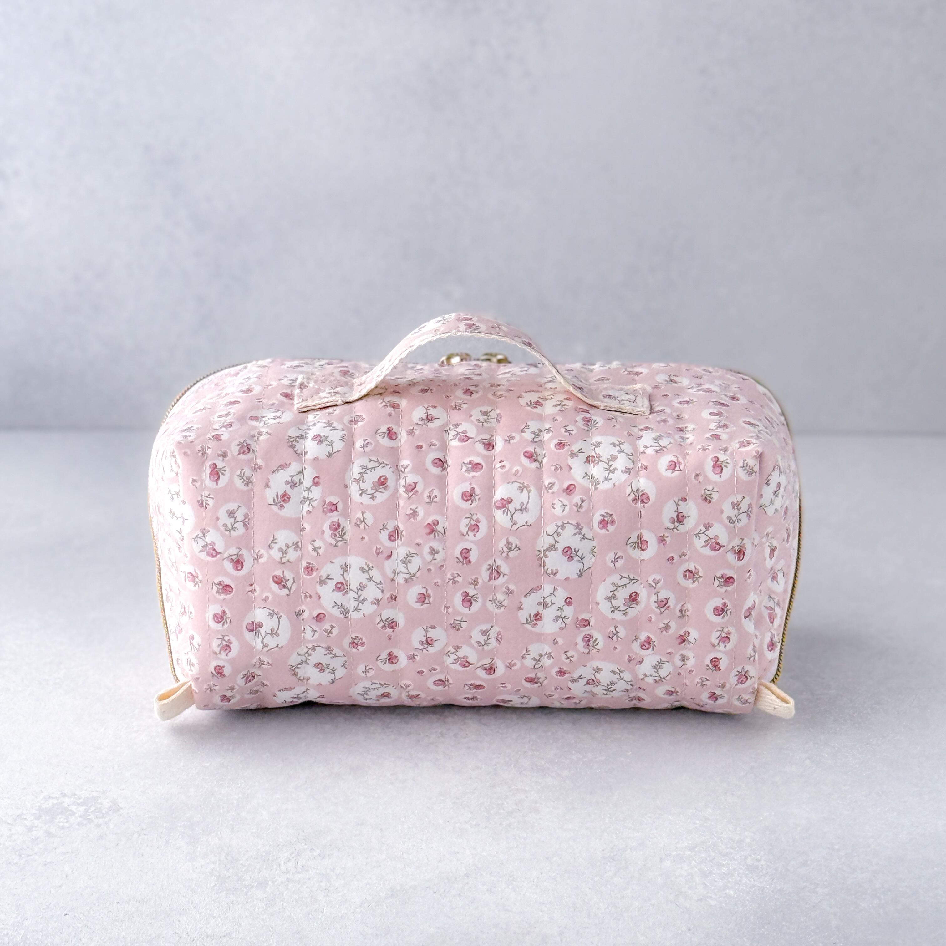 【リバティ】ガバッと開くハンドル付きスクエアポーチ|仕切りファスナーでスッキリ整理(ジョアンナI)