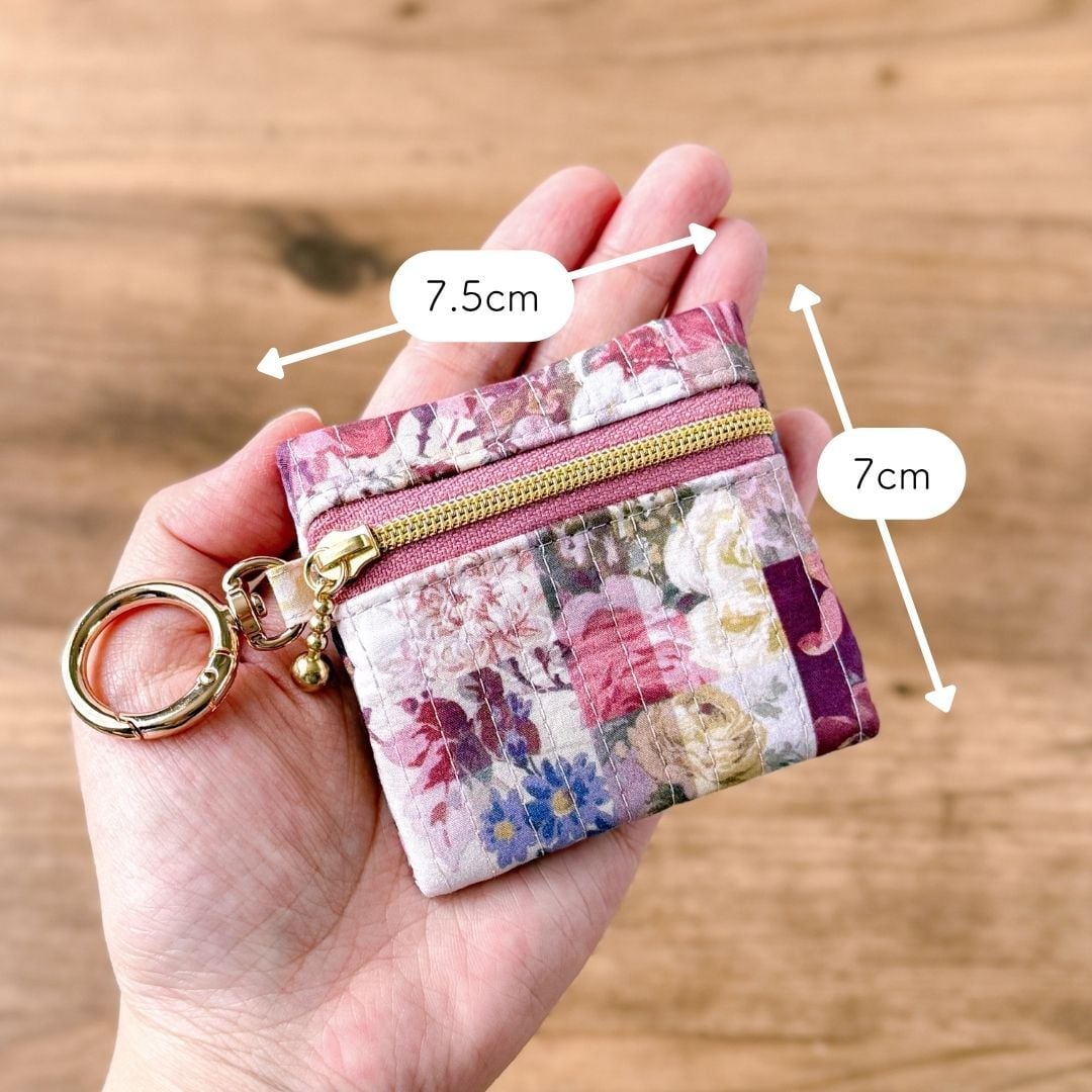 リバティを大切に使い切るために生まれた、手のひらサイズのミニミニスクエアポーチです。
