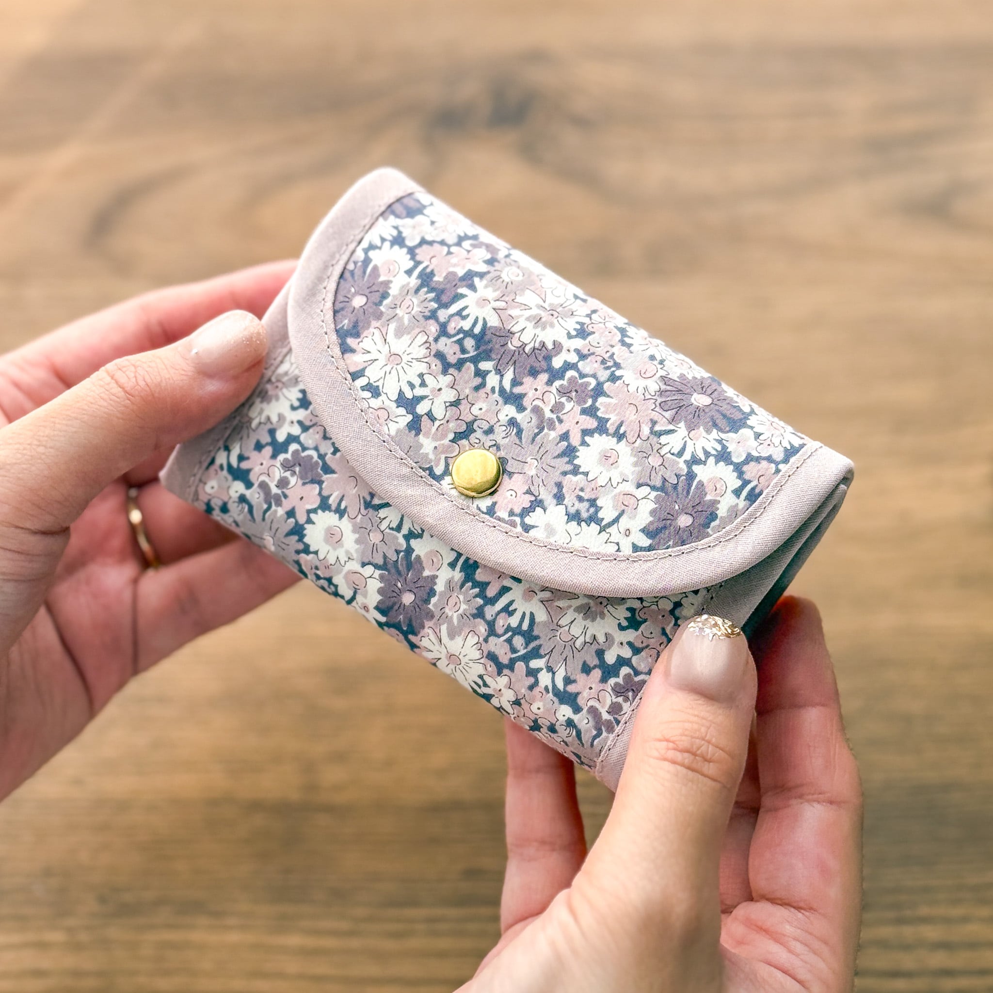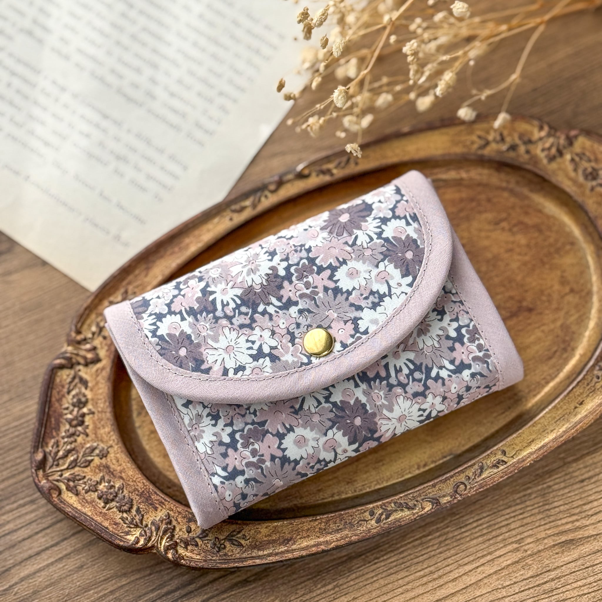 ●コンパクトなサイズ:手のひらに収まるサイズ感で、小さめのバッグにもすっきり収まります。リバティの華やかさを引き立てる、バイアスの組み合わせもポイントです。
