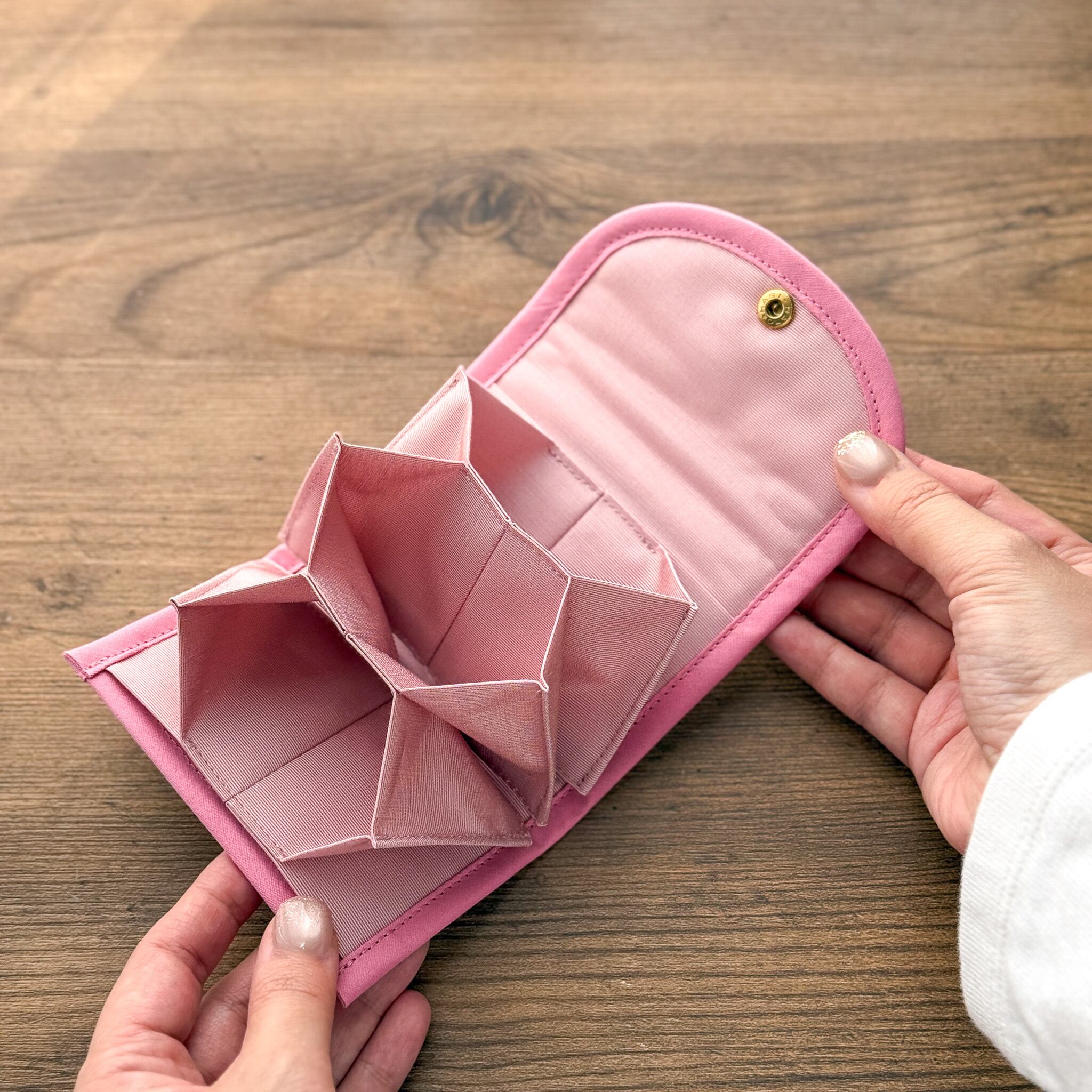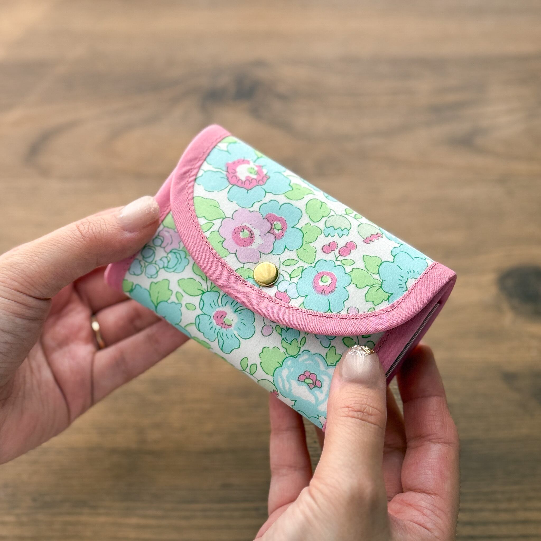 ●コンパクトなサイズ:手のひらに収まるサイズ感で、小さめのバッグにもすっきり収まります。リバティの華やかさを引き立てる、バイアスの組み合わせもポイントです。
